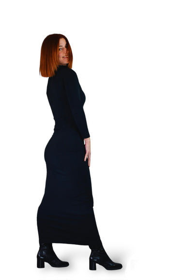 Te costará entender como un vestido tan aparentemente simple sienta tan bien. Manga larga, medio cuello cisne y falda recta larga hacen de este ve...