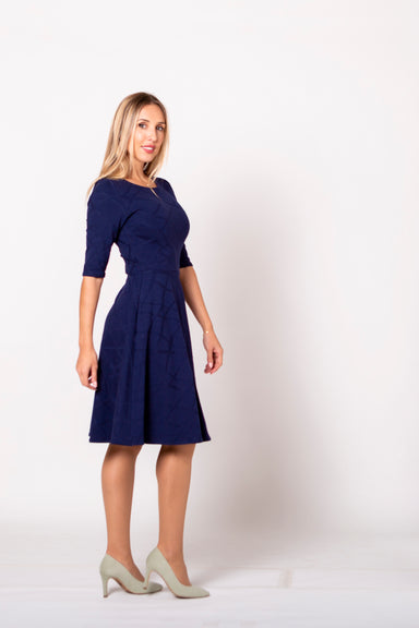 The fitted bodice, the flared skirt and its French sleeves give this dress a delicate and feminine air. You will feel flattered and sure of yoursel...