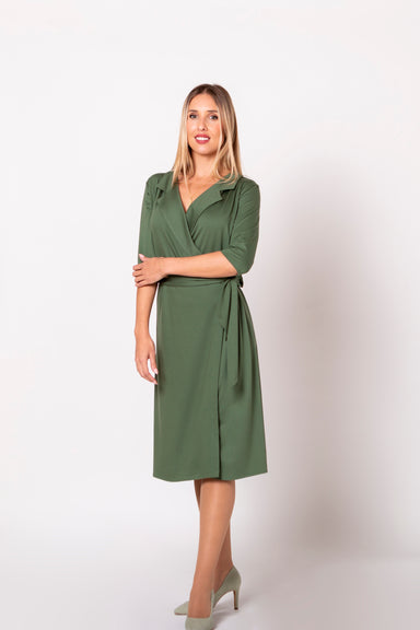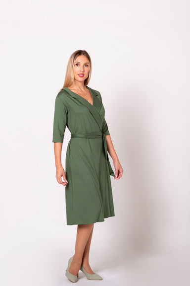 Comfort and elegance stand out in this model. It is a wrap dress with a V-neckline and lapels that is closed with a belt. The fabric is wonderful, ...