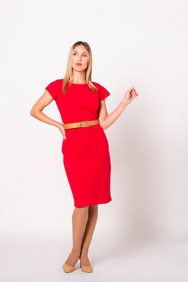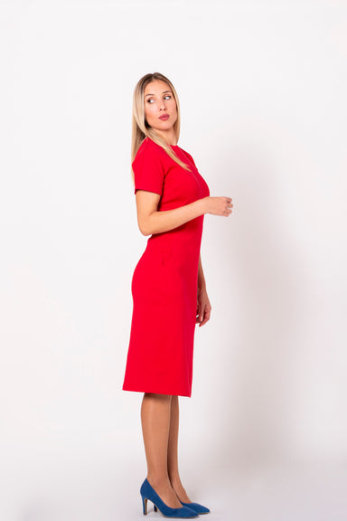 It will be difficult for you to understand how such a seemingly simple dress looks so good. Batwing sleeves, boat neckline and pencil skirt make t...